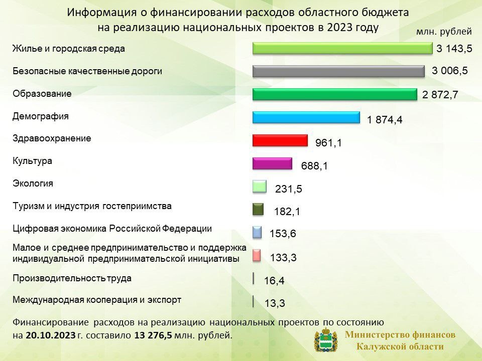 В Калужской области по состоянию на 25 октября на реализацию нацпроектов направили 13,276 миллиарда рублей.