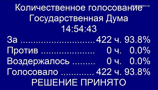 Государственная Дума поддержала законопроект и приняла его в первом чтении.