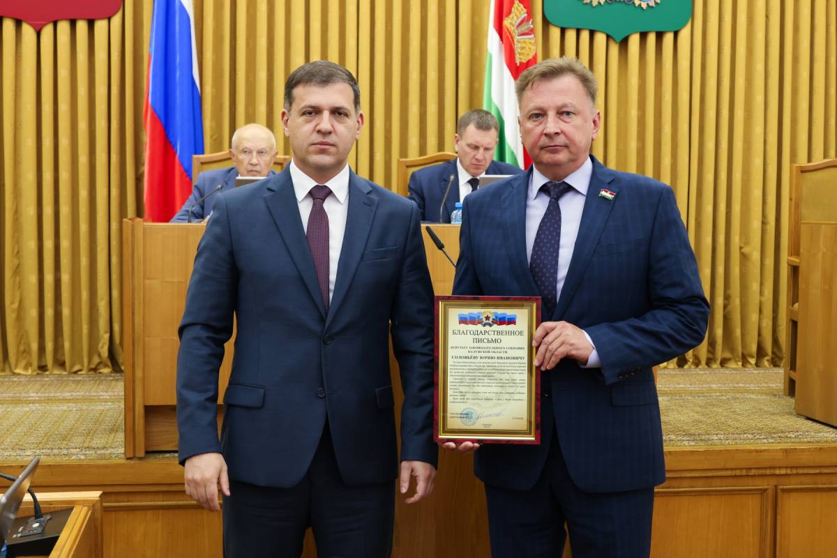 Благодарственным письмом Губернатора за активную гражданскую позицию, большой вклад в развитие волонтерского движения награжден депутат областного парламента Юрий Соловьев. От имени Главы администрации Первомайска ЛНР Сергея Колягина ему вручили Благодарственное письмо.