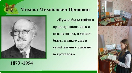 4 февраля 2023 года исполняется 150 лет со дня рождения Михаила Михайловича Пришвина, писателя, посвятившего себя изучению родной природы. Его произведения полны тонких наблюдений за жизнью леса и его обитателей, герои его книг - звери и птицы, одновременно и реалистичные, и сказочные, - описаны писателем с такой любовью, что и читатель волей - неволей проникается сочувствием к обитателям русского леса. Пришвин был одарён умением слышать пенье птиц, щелест трав, разговор зверей и мастерски описывает всё это в своих произведениях. Книги М.М.Пришвина предназначены для читателей разного возраста: для детей дошкольного возраста и школьников, для молодежи и читателей старшего поколения. К этому событию в Кузьминичской сельской библиотеке для читателей оформлена книжная выставка " Певец русской земли" и проведен литературный час для детей. Библиотекарь познакомила детей с биографией и творчеством писателя, познакомились с книгами М.Пришвина, которые находятся на выставке. Дети совершили импровизированное путешествие в рассказ " Золотой луг", где погрелись на солнышке. Они с удовольствием отвечали на вопросы литературной викторины, отгадывали лесные загадки, поиграли в игру " Летает - не летает".Дети с удовольствием пообщались, и решили, что все услышанное учит их любить природу и ее обитателей, и её беречь и охранять.