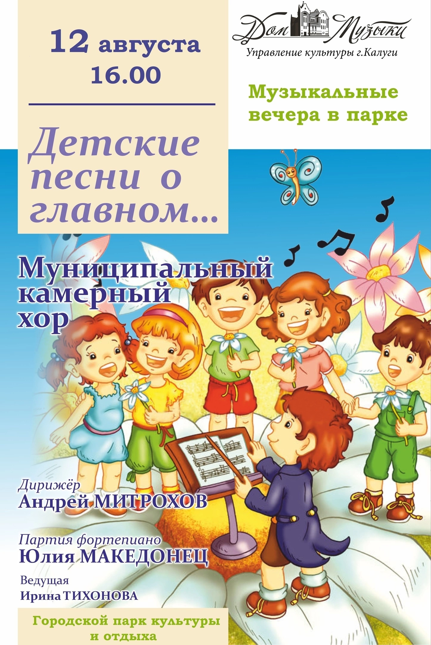 12 августа в городском парке культуры и отдыха состоится концерт Калужского камерного хора, который исполнит известные песни из мультфильмом.
