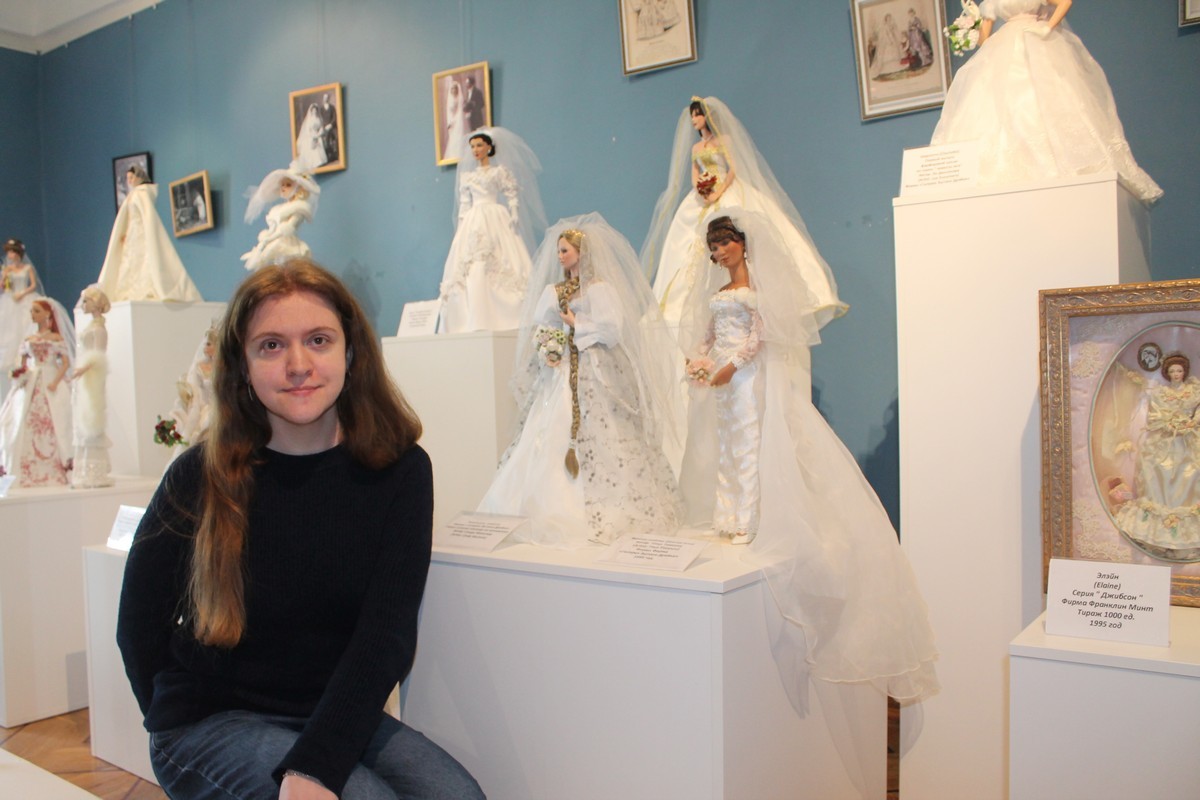 По профессии Наталья графический дизайнер, но потом увлечение куклами затянуло, она полностью занялась музеем, а также созданием кукол и нарядов для них. Теперь этим и живет. В Калугу коллекционер привезла 86 свадебных кукол.
