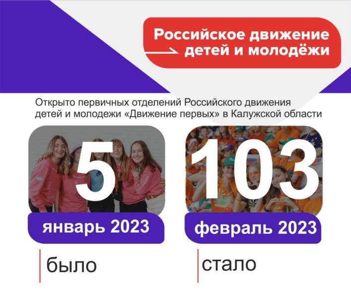 Во всех регионах России продолжается марафон открытия первичных отделений Российского движения детей и молодежи «Движение первых». К концу 2023 года по всей стране планируется открыть порядка 10 тысяч первичных отделений РДДМ. Калужская область - не исключение, здесь также еженедельно ведется работа по развитию нового движения.