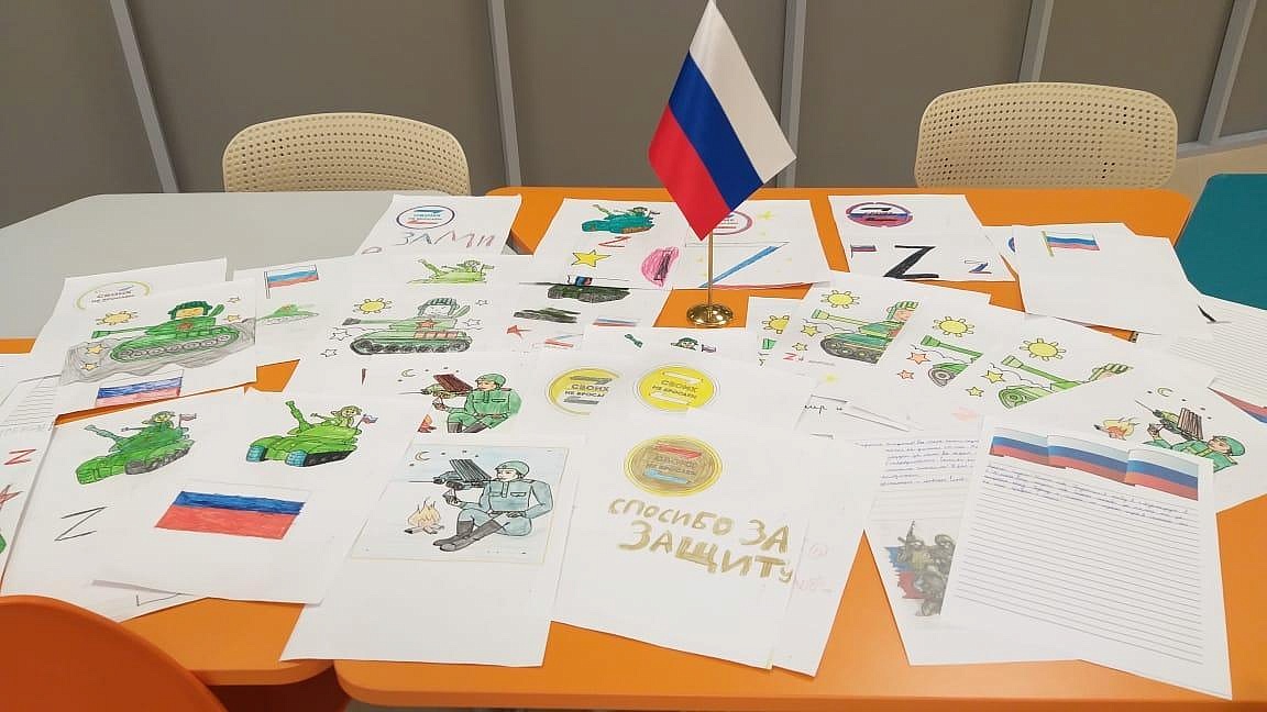 Дети пишут трогательные и душевные письма солдатам, а также вместе с учителями и родителями собирают гуманитарную помощь для фронта.