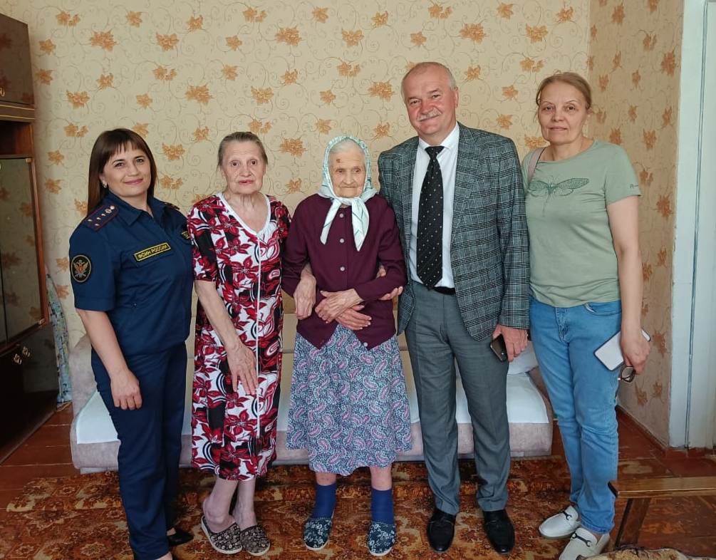 В рамках встречи сотрудники вручили Екатерине Сергеевне адресное поздравление президента Российской Федерации, поблагодарили за мирное небо над головой, а также пожелали крепкого здоровья, благополучия, долгих лет жизни, заботы и внимания от близких людей.