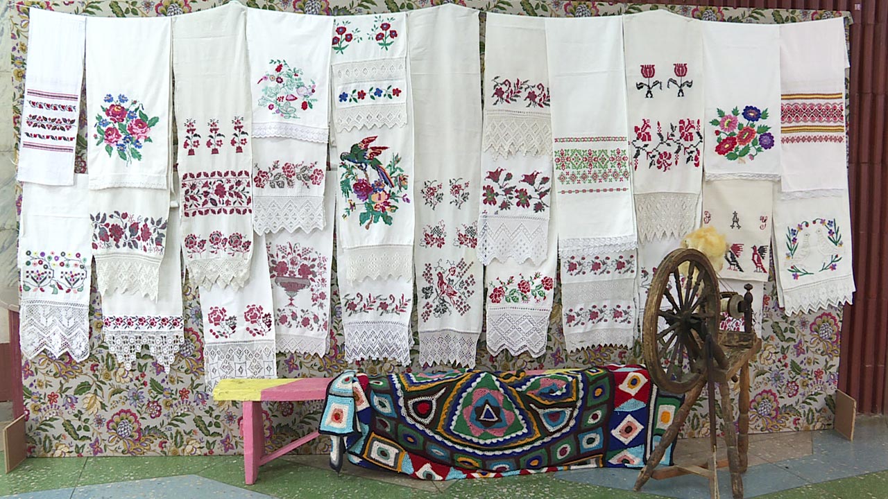 В экспозиции собраны предметы, которые хранятся в коллекции учреждения. Все они сохранились в семьях, которые проживают на территории разных районов Калужской и соседних областей. Все узоры на экспонатах вышиты вручную. Преобладает красная нить. На некоторых добавлены нити другого цвета и бисер. Применяются разные способы вышивки. Каждый узор имеет свое значение. В древности рушники выполняли роль оберега, для каждого случая вышивку подбирали отдельно. Рушник для свадьбы, для оформления красного уголка, пасхальный или крестильный - отличались друг от друга вышитыми элементами. В общей сложности в коллекции дома культуры хранится около 50 таких уникальных вещей.