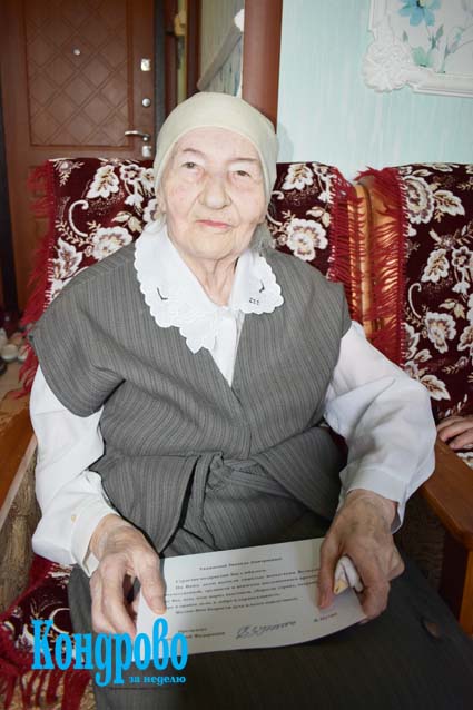 В день юбилея виновница торжества встречала гостей. Председатель городского Совета ветеранов Любовь Михайловна Тимошина передала подарок от главы региона, зачитала Благодарственные письма и поздравления в адрес ветерана от руководителей страны, области и района.