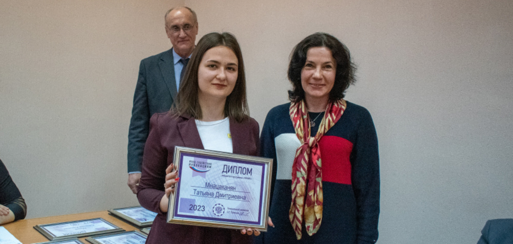 23 апреля на заседании Учёного совета КФ МГТУ им. Н.Э. Баумана состоялось награждение студентов, принявших участие в конкурсе «УМНИК-2023». За предложенные разработки им присуждены гранты в размере 500 тысяч рублей. Директор департамента поддержки инновационных предприятий и проектов АИРКО Алина Цепенко вручила дипломы победителям: