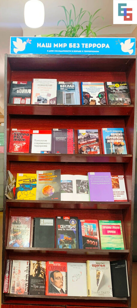 Отдавая дань памяти жертвам террористических актов, а также сотрудникам правоохранительных органов, погибшим при исполнении служебного долга, сотрудниками Центра книги и чтения был проведен познавательный час « Наш мир без террора». Материалы к мероприятию, представленные на книжной выставке, познакомили читателей с понятиями, сущностью, отличительными чертами и разновидностями международного терроризма, основными методами и формами борьбы и антитеррористической деятельности.