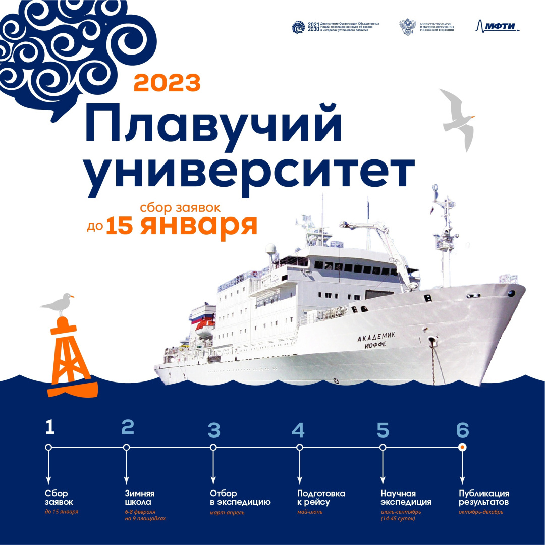 Выбирайте интересное вам направление и заполняйте заявку до 15 января: https://vk.cc/ck9dUm . Научно-образовательная программа «Плавучий университет» осуществляется при поддержке Минобрнауки России.