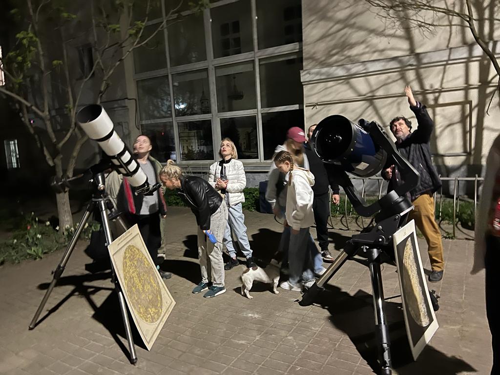 Также в этот день на открытой территории ГМИК прошла акция Тротуарной астрономии. Погода не подвела, и калужане весь вечер наслаждались наблюдениями Солнца, Луны и Венеры в малые инструменты нашей обсерватории.
