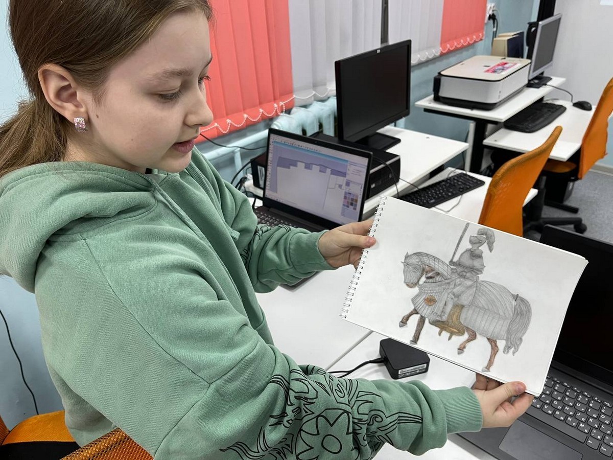 Вика нарисовала рыцаря. В мультстудии она первый год, но не первый год занимается живописью здесь же, в «Созвездии».
