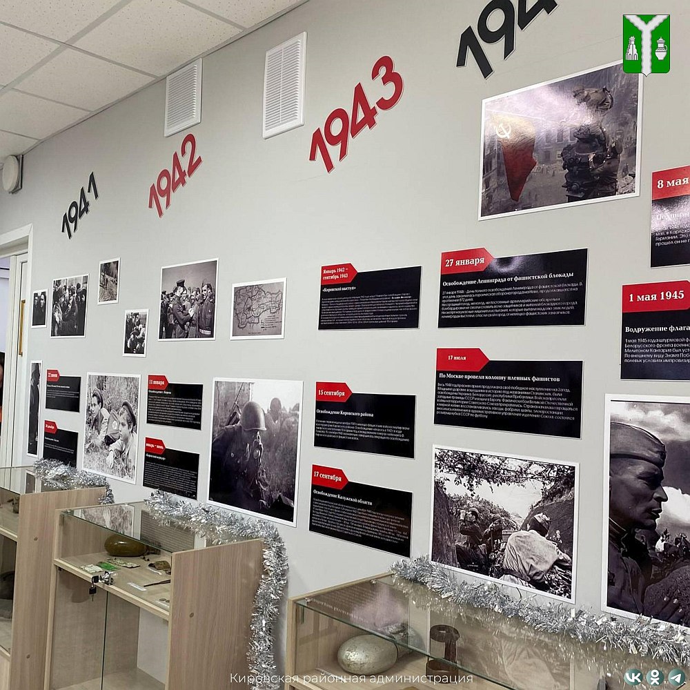 1. Холл - экспозиция посвящена Кировскому выступу. Центральное место экспозиции - карта, на которой отражены события 1941-1943 гг.