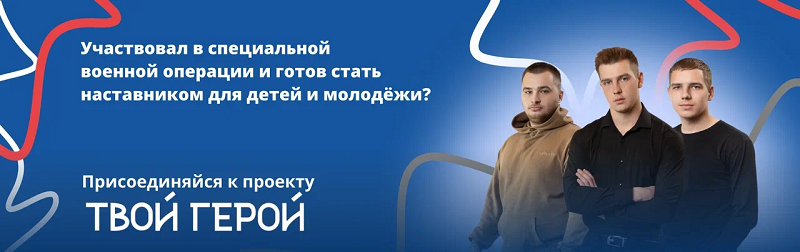 повышение квалификации и переподготовка военнослужащих и мобилизованных, вернувшихся из зоны СВО; - создание условий для социально-психологической реабилитации участников Проекта; трудоустройство участников Проекта в центры патриотического воспитания по всей территории Российской Федерации, образовательные организации высшего образования, молодежные центры, региональные отделения Общероссийского общественно-государственного движения детей и молодежи «Движение первых», региональные детские лагеря, военно-патриотические клубы и объединения; привлечение участников Проекта в просветительскую и наставническую деятельность.«Твой Герой» — это проект для демобилизованных военнослужащих, участников СВО, вернувшихся с фронта.