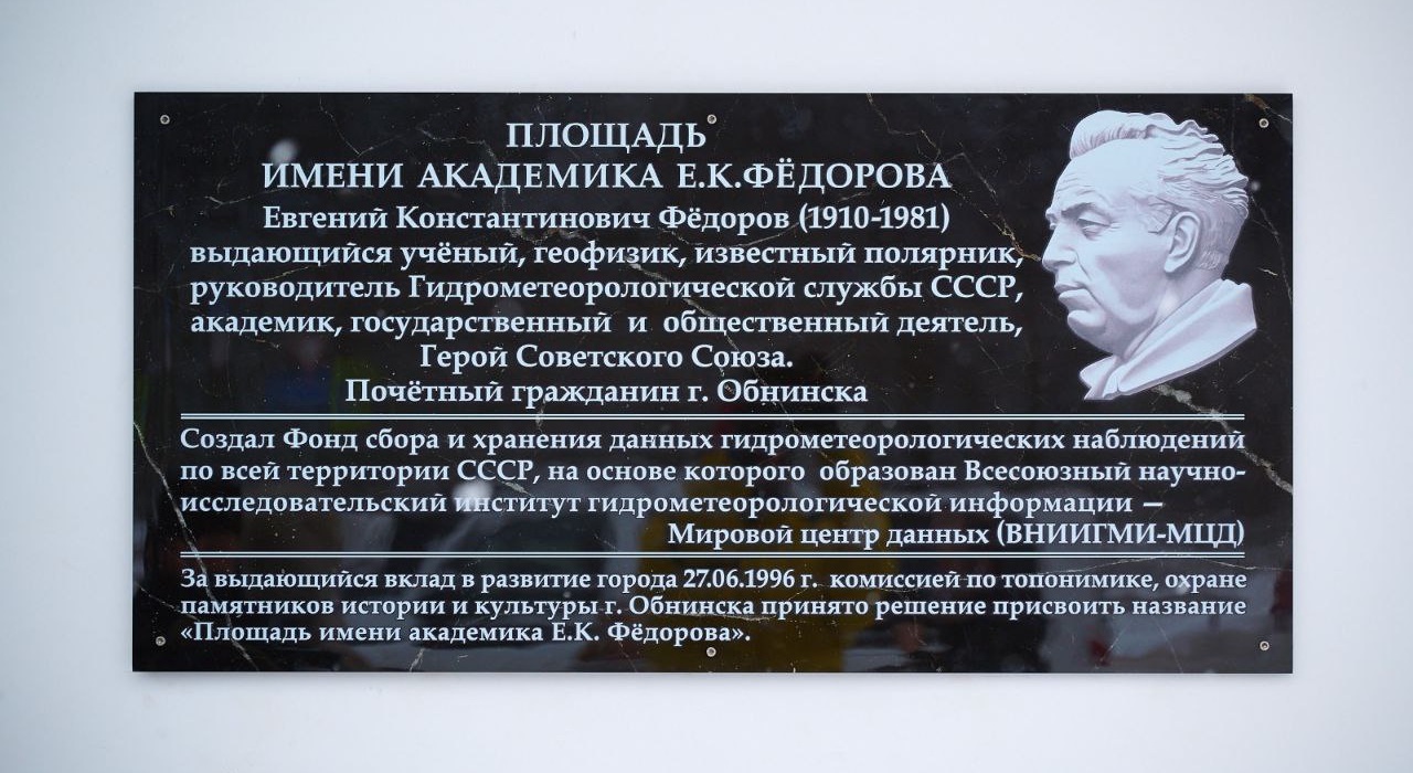 Выдающийся ученый-геофизик Евгений Федоров 20 лет возглавлял Гидрометслужбу СССР, был участником экспедиции «Северный полюс-1», основал в нашем городе три научных института: ВНИИГМИ – МЦД, ВНИИСХМ и Тайфун. Под его руководством построили высотную метеорологическую мачту, которая в народе получила название «Федоровская вышка».
