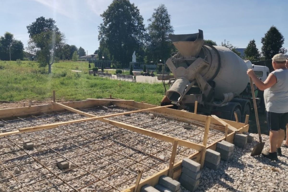 Депутат выделил внебюджетные средства на необходимые материалы и сегодня при активном участии жителей деревни работы по бетонированию фундаментной плиты завершены. Строительные работы по возведению часовни продолжатся совместно с Главой района Андреем Степаняно м, родственником погибшего ветерана, жителями и Главой деревни Никольское.