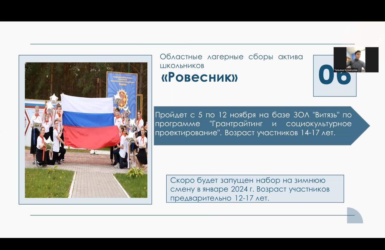 31 октября в онлайн формате прошло ежемесячное семинар-совещание лидеров молодежных общественных объединений и методистов по работе с детскими и молодёжными объединениями муниципальных районов (городских округов) Калужской области.