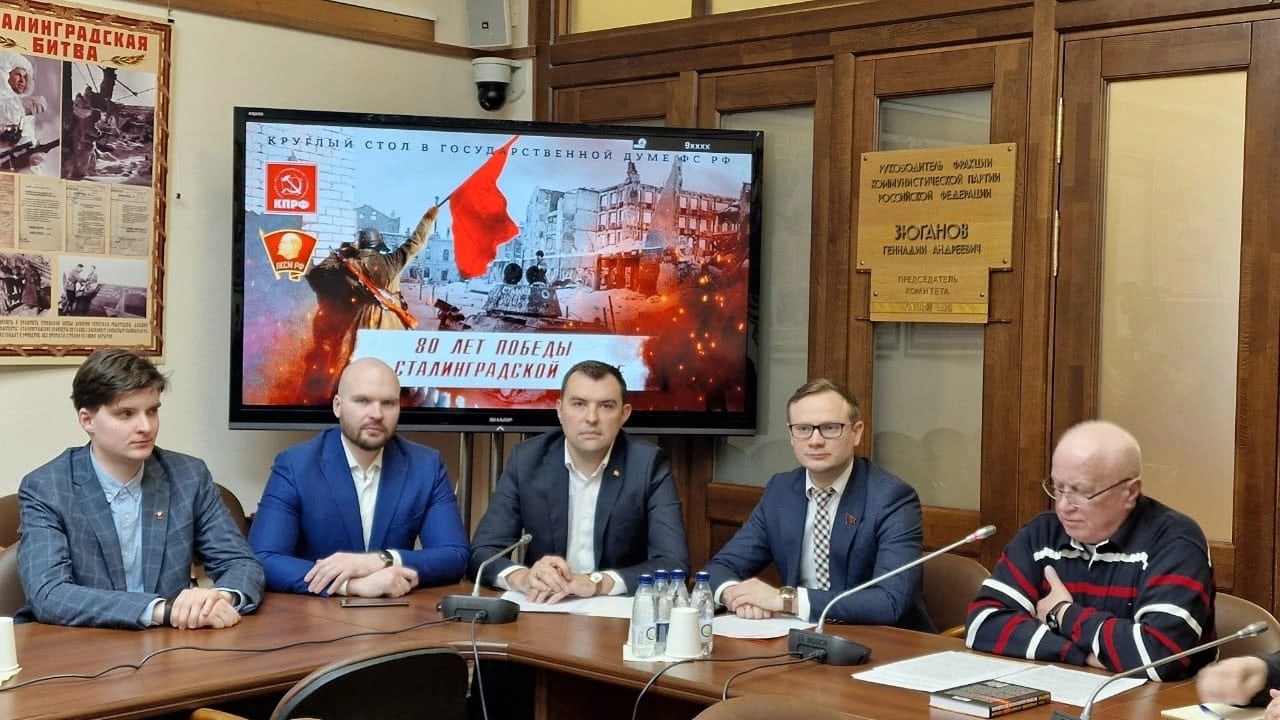 8 февраля в холле фракции КПРФ в Государственной Думе ФС РФ прошёл круглый стол, посвящённый 80-летию Победы Красной Армии в Сталинградской битве.