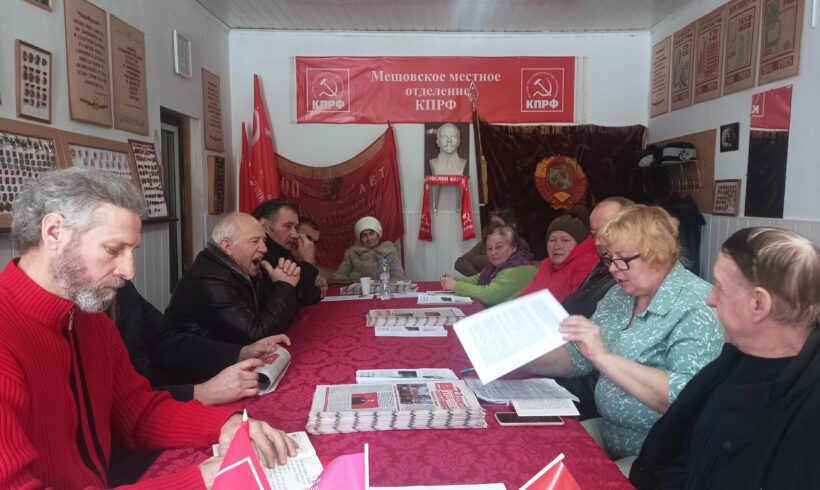 О борьбе коммунистов против пришедшие к власти в стране «либералов» во главе с президентом России Б.Н. Ельциным рассказал коммунистам Мещовского района на состоявшемся 12 февраля партийном собрании первый секретарь райкома КПРФ Н.В. Иванов. Он также ознакомил присутствующих на собрании с Обращением к гражданам России, к коммунистам и сторонникам КПРФ Председателя ЦК КПРФ Г.А. Зюганова.