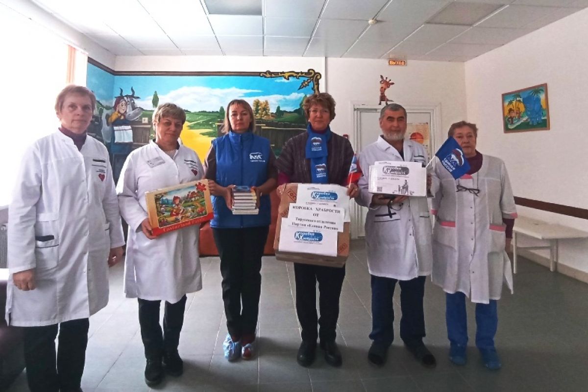 В День рождения Партии в детском отделении Центральной районной больницы Тарусского района активисты - единороссы вручали юным пациентам подарки из «Коробки храбрости».