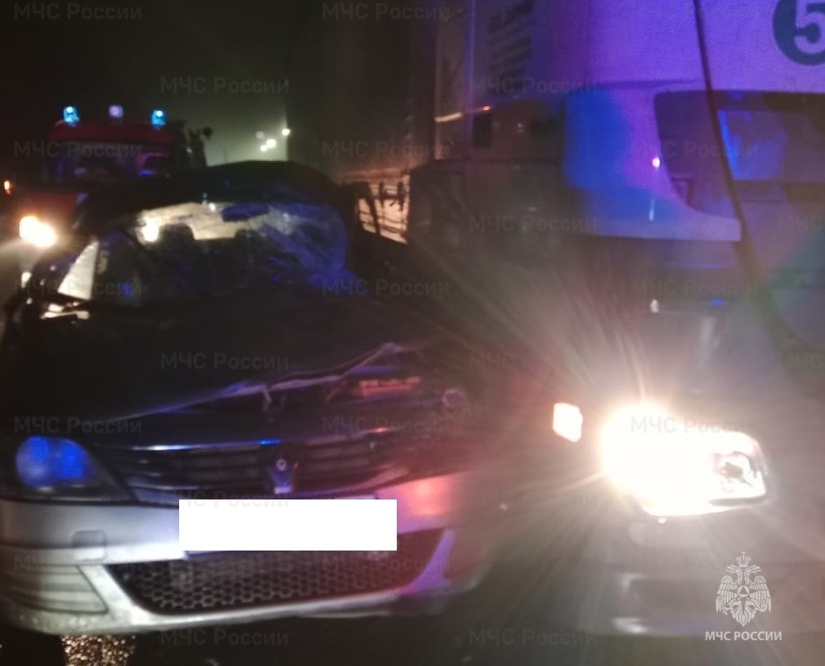 Как видно по фото с места происшествия, столкновение было боковым — легковушка ехала справа, а слева её как раз и притёрла фура. Ликвидацией последствий аварии занимались спасатели, патруль ГИБДД и работники скорой медицинской помощи.