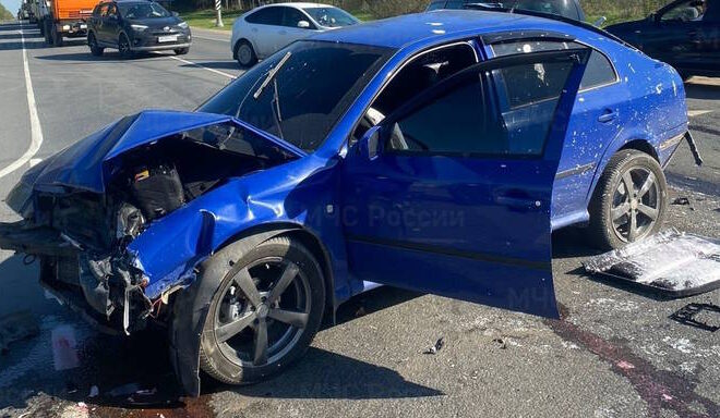 На трассе в Боровском районе столкнулись три “Шкоды” и “Мазда”