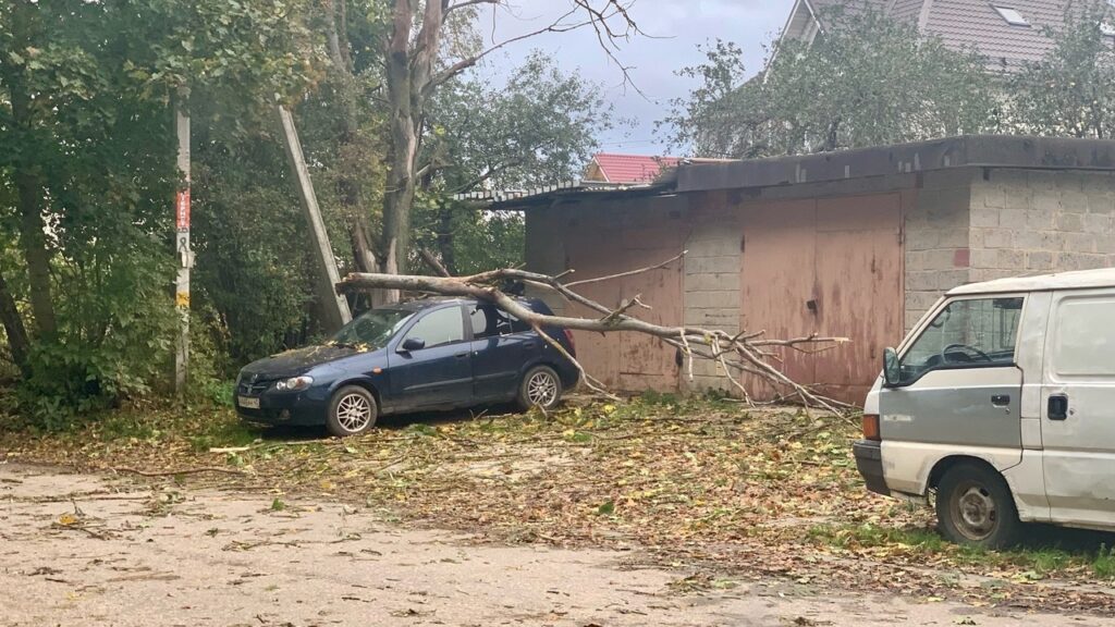 Также корреспондент «Знамени» сообщил, что большая ветка упала на припаркованный автомобиль Nissan в Железняках в областном центре.