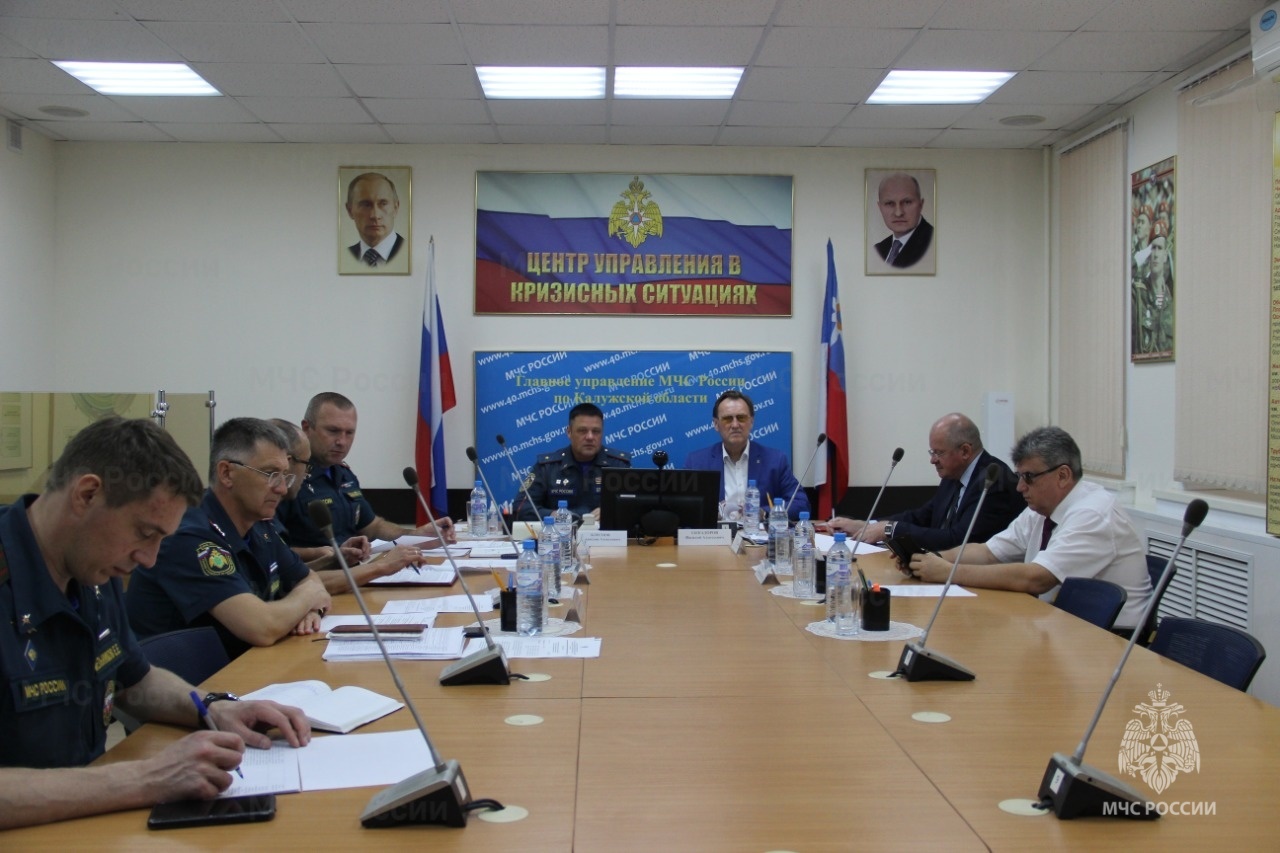 Заседание проводилось в режиме видеоконференцсвязи. Калужский регион представляли заместитель Губернатора Калужской области Василий Быкадоров, начальник Главного управления МЧС России по Калужской области генерал-майор внутренней службы Владислав Блеснов, Министр образования и науки Калужской области Александр Аникеев и руководящий состав Главного управления.