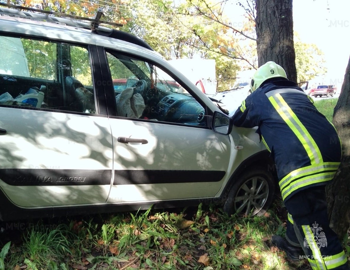 Около 14:30 в понедельник, 25 сентября, на Грабцевском шоссе в Калуге столкнулись два автомобиля. Фото опубликовало ГУ МЧС по Калужской области.
