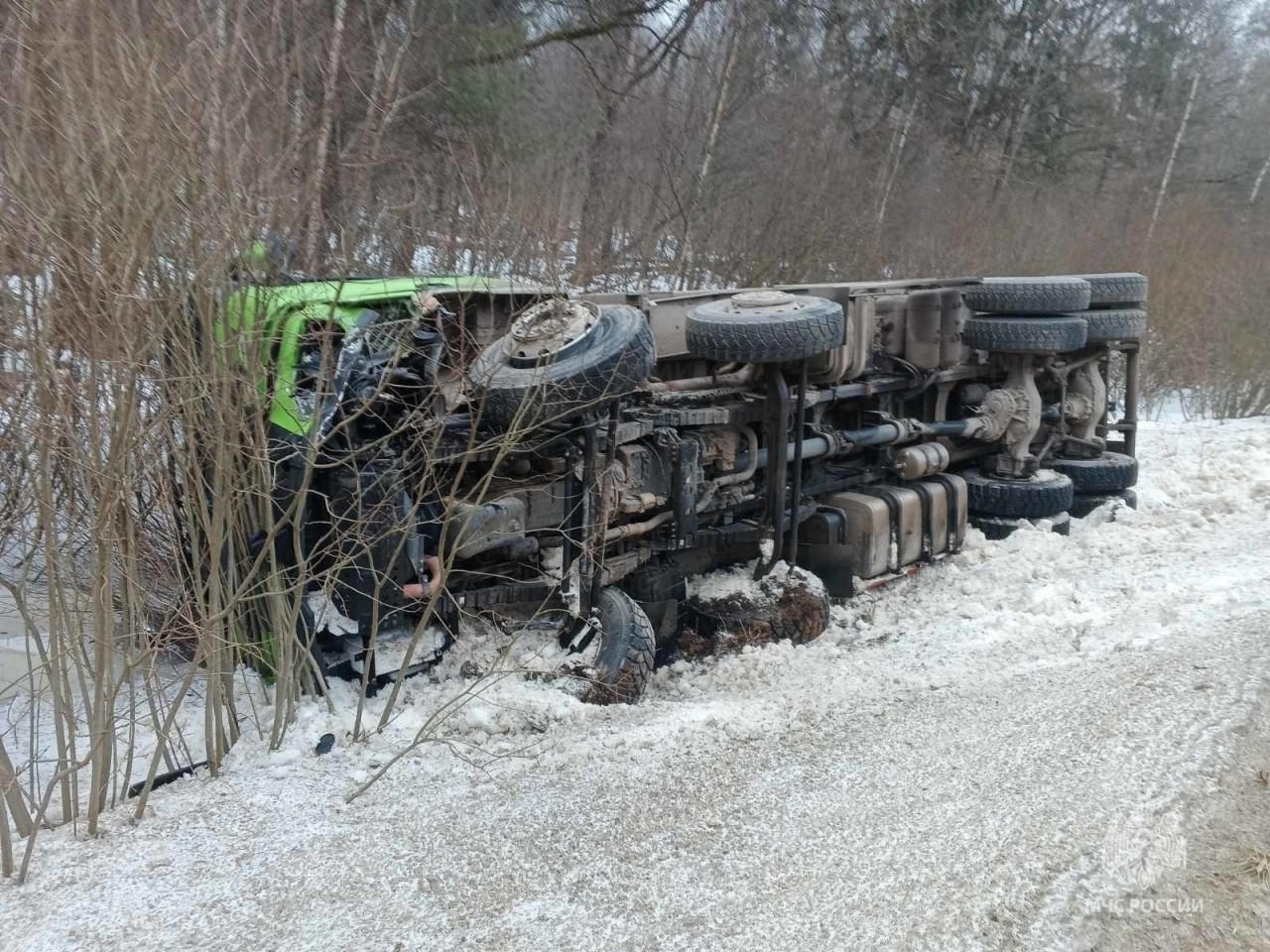 В результате ДТП оба автомобиля оказались в кювете. Самосвал перевернулся.