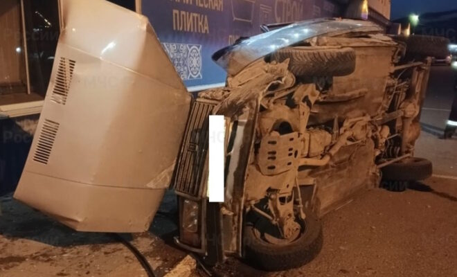 В Кирове на Пролетарской “ВАЗ” врезался в бордюр и опрокинулся