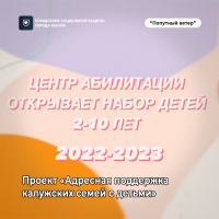 Центра абилитации фонда открывает набор детей 2-10 лет включительно, в том числе, детей с ограниченными возможностями здоровья в Проект «Адресная поддержка калужских семей с детьми».
