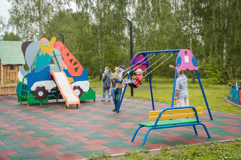 Подрядчики учли пожелания местных жителей и обустроили отдельно качели для самых маленьких, а также единственные в регионе качели для взрослых, которые «взлетают выше неба».