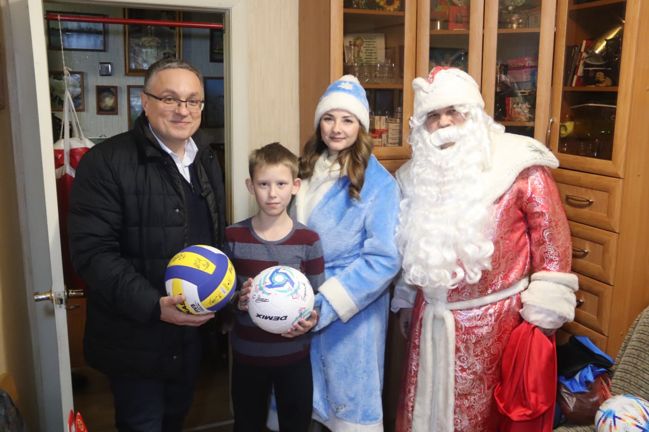 Градоначальник Дмитрий Денисов принимает участие в благотворительной акции «Елка добра». На этот раз он исполнил мечту юного жителя города Павла Здонова, который загадал спортивные мячи.