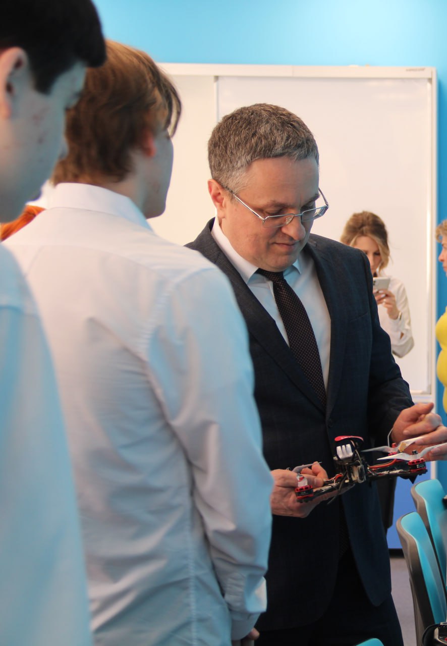 Он пообщался с юными учёными технопарка.Ребята показали учебный процесс, командную работу. Они конструируют ракеты, создают 3D-шахматы, работают с датчиками бортового управления, изучают робототехнику и многое другое. А еще разработали свой квадрокоптер. У каждого отличные технические наработки!