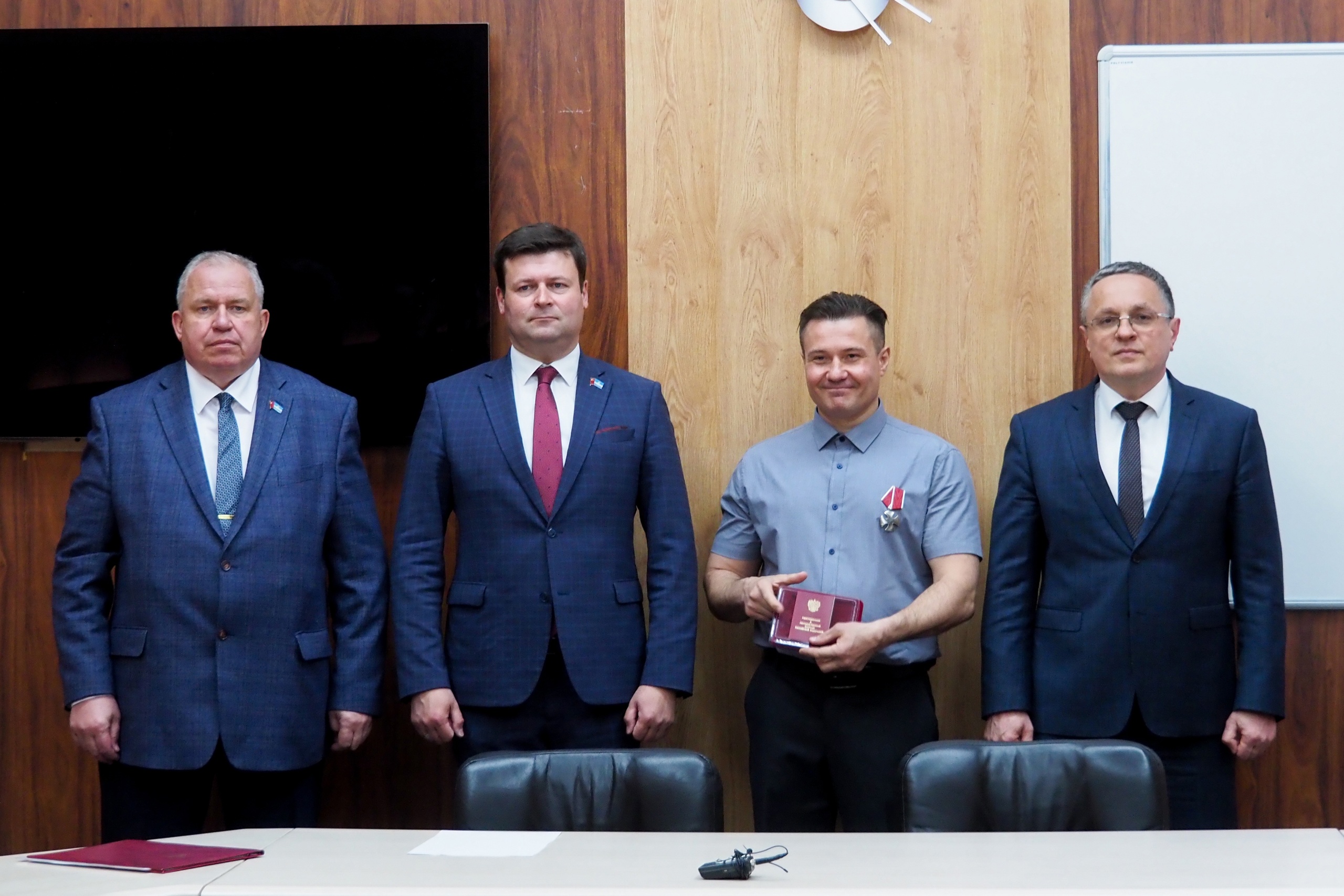 Указом Президента Российской Федерации Владимир Андреевич награждён Орденом Мужества. Городской Голова Дмитрий Денисов и Глава городского самоуправления Юрий Моисеев вручили добровольцу 20 отряда "Барс" эту заслуженную награду.
