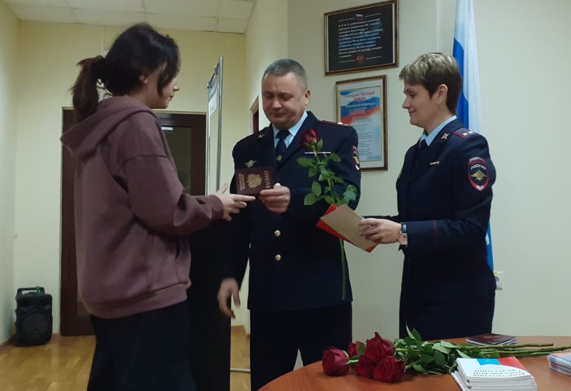 Накануне Дня народного единства в отделе по вопросам миграции ОМВД России по городу Обнинску состоялось торжественное вручение паспортов 14-летним жителям первого наукограда.
