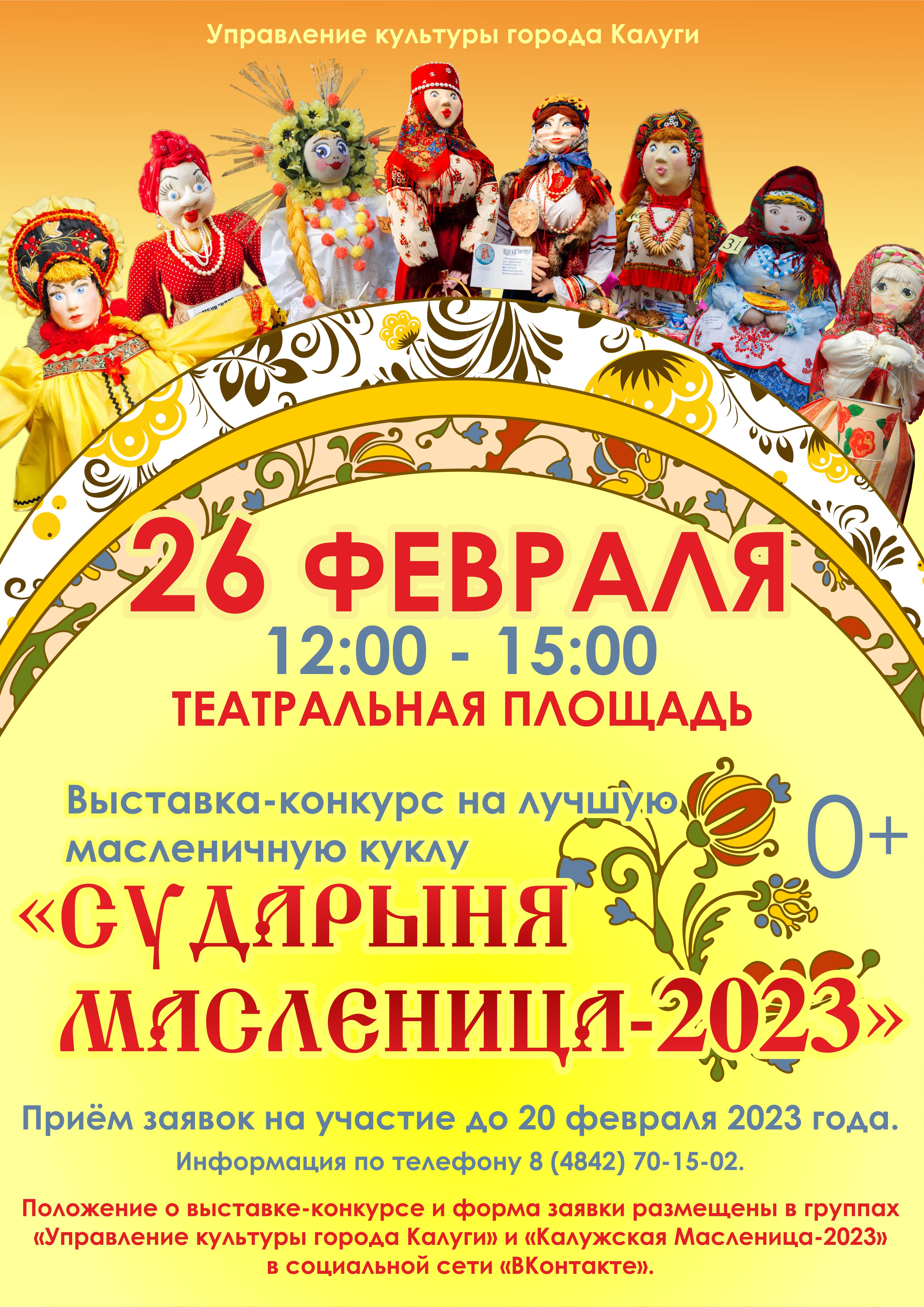 Калужан приглашают принять участие в конкурсе на лучшую масленичную куклу «Сударыня масленица – 2023».