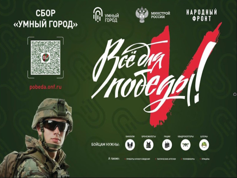 Совместно с Народным Фронтом в рамках проекта «Все для Победы!» Минстрой России реализует акцию Сбор «Умный город» по трем основным направлениям: