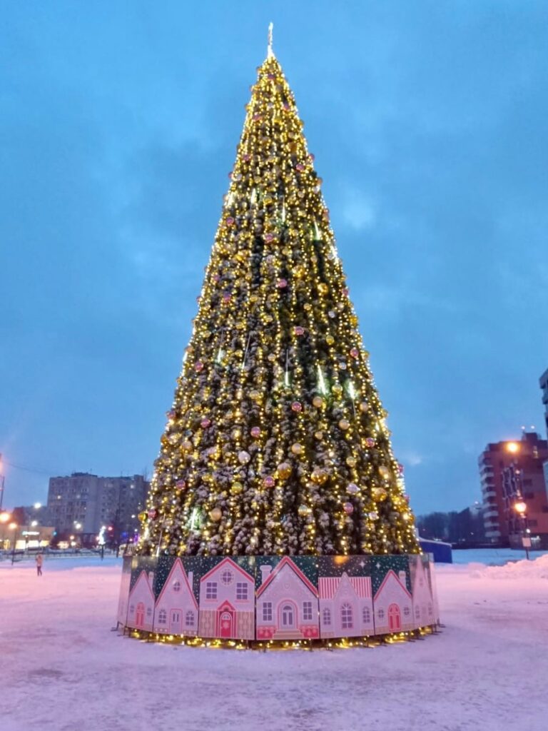 В наукограде на площади по проспекту Маркса зажгли большую новогоднюю ёлку.