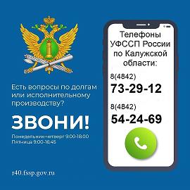 До «колл-центра» калужских судебных приставов можно дозвониться по двум номерам – 8(4842) 73-29-12 и 54-24-69. При необходимости специалисты помогут жителям региона записаться на личный приём к нужному должностному лицу.