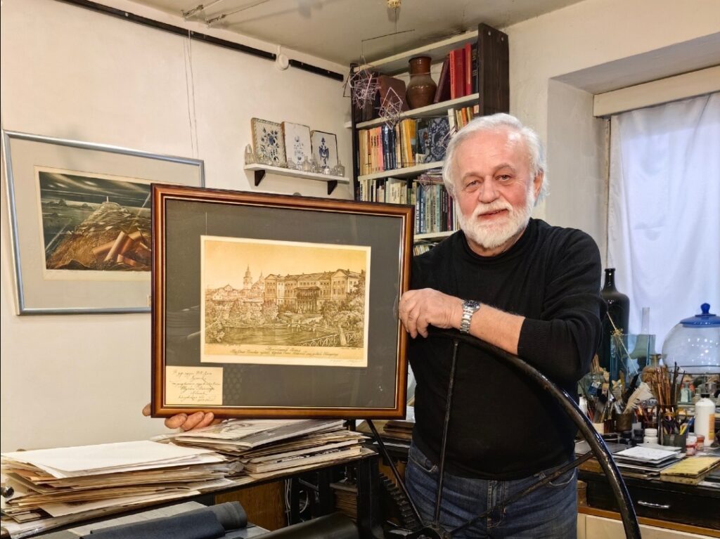 Обнинский художник передал в Луганск гравюру с домом Гончаровых