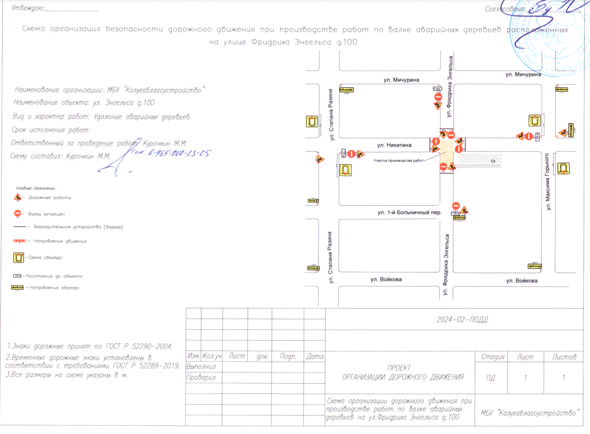 В связи с проведением работ по сносу аварийных деревьев МБУ «Калуга благоустройство» в период с 9-00 час. до 13-00 час 17.02.2024 будет ограничено движение для всех видов транспорта на перекрестке ул. Ф.Энгельса — ул. Никитина, в районе дома 100 по ул. Ф. Энгельса.