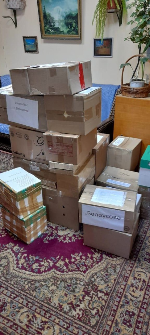 Сотрудники городской библиотеки предоставили коробки с теплыми носками, перчатками.