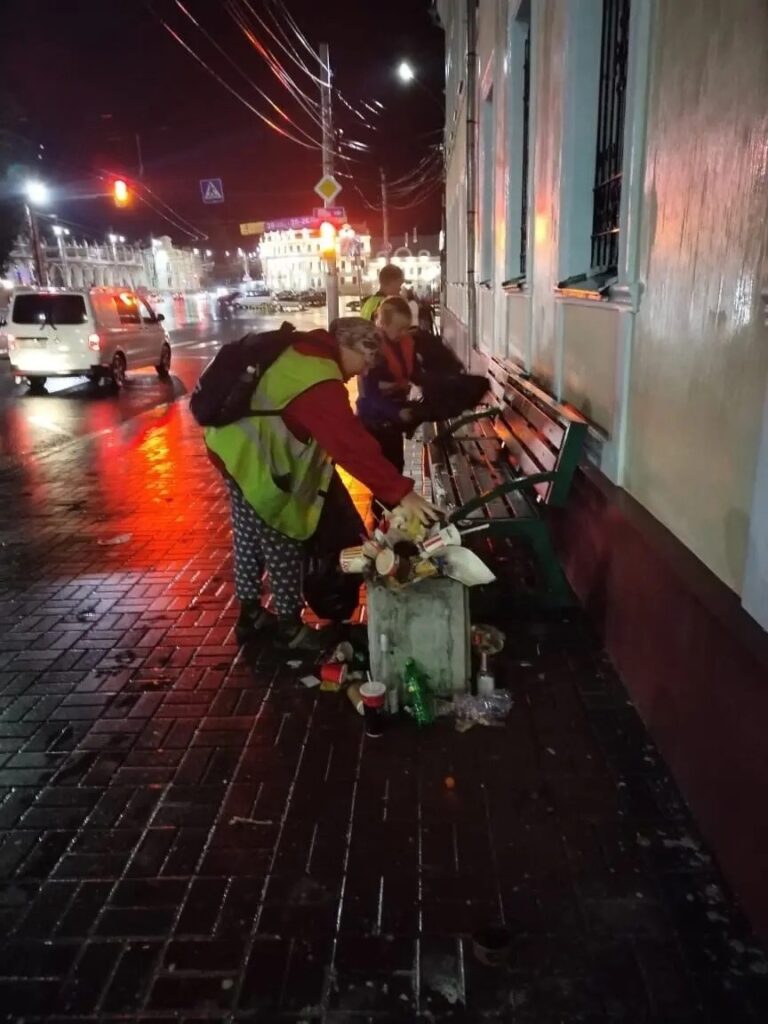 Переполненные урны начали убирать в Калуге ночью после Дня города