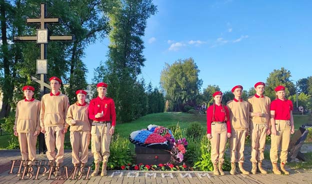 Вечером юнармейцы отряда «Русичи», работники культурно-досугового центра имени А.Г.Родионова, представители образования и Совета ветеранов пришли к памятнику Неизвестному Солдату, установленному в Сквере Памяти.