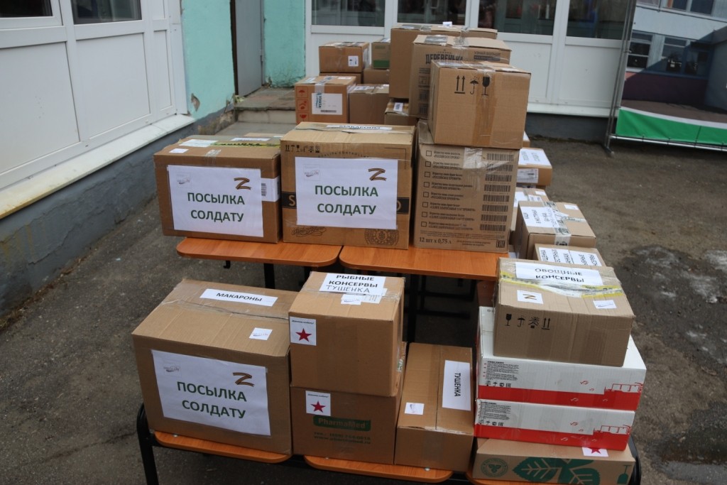 Тушенка, сгущенка, рыбные консервы, крупы, макароны, кондитерские изделия, а еще детские поделки и письма с теплыми пожеланиями скорее вернуться домой с победой.
