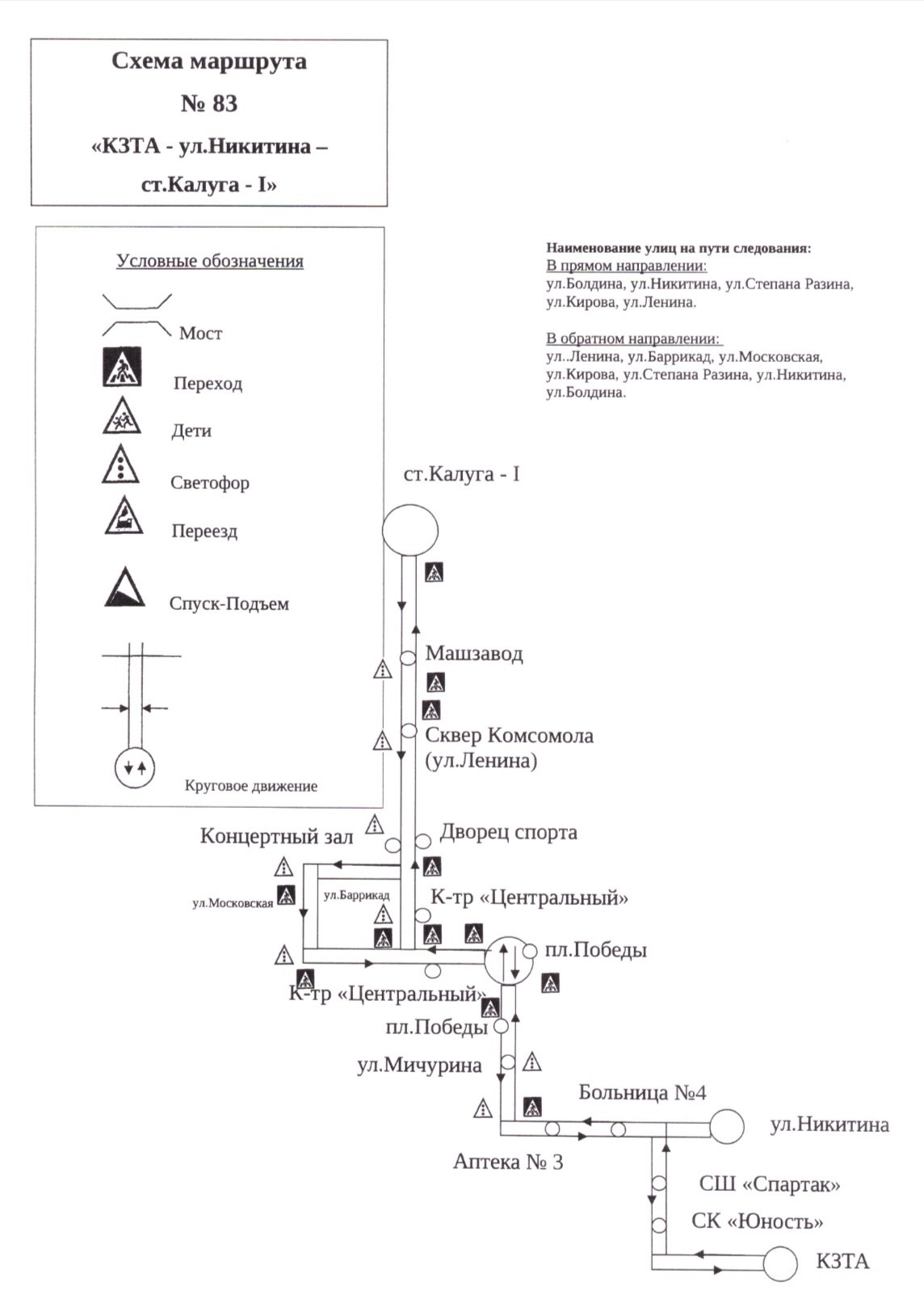 Как сообщает управление городского хозяйства города Калуги, возобновляется работа муниципального маршрута № 83 «КЗТА — ул.Никитина — ст.Калуга -1».