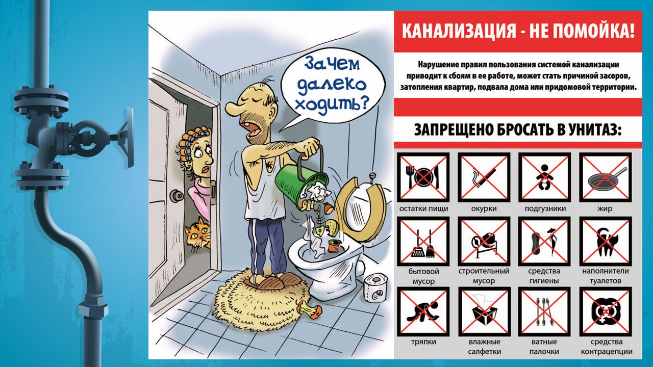 Обращаем Ваше внимание, что канализация — это не мусоропровод. У них разные задачи, функции и правила использования.