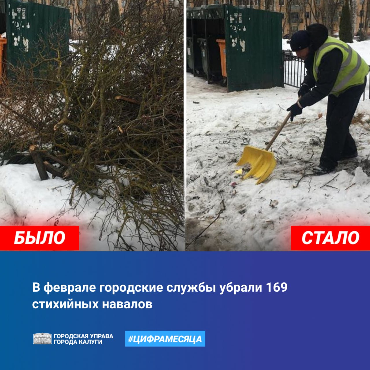 Как сообщил Городской Голова Дмитрий Денисов в соцсетях, за февраль городские службы расчистили 169 свалок у контейнерных площадок. Ветки и листву вывезли, территорию дополнительно очистили от мусора и снега.